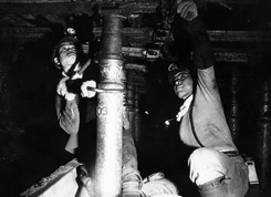 羽幌炭砿は昭和25(1950)年の長期ストの終結を機に労使協調路線を歩み始め、徹底した合理化を進めた結果、1人当たりの年間出炭量も目に見えて増加し、終戦当時はわずか7トンであったのが、昭和26(1951)年の「鉄柱カッペ採炭」開始により15トンに、昭和28(1953)年の「大竪入」完成により昭和29年度21トン、昭和30年度27.6トン、昭和31(1956)年の「ベルト斜坑」の完成により昭和31年度には32トン余りに急伸する。この数字は当時の全国大手炭鉱平均の2倍近い出炭効率であった。