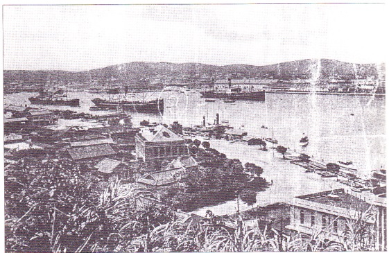 明治28(1895)年4月、下関条約が締結され、台湾の割譲が決まると、金子直吉は渡台の機会を探り始めた。同年5月、新領土受け取りのため軍艦松島が神戸港に入ると、分隊長として乗り組んでいた同郷の先輩島村速雄に面会して便乗を依頼するが、商人を乗せるわけにはいかないとあっさりと断わられた。その後、これも同郷の友人肥田景之が大工100人を台湾に送る命を受けていることを知り、その取締のような資格で店員小松平太郎を潜り込ませることに成功した。