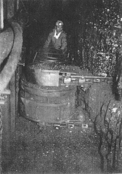 検索結果へ戻る 写真を検索する 鈴木商店写真館 築別炭砿左四片スライシング下段、カッター切断(昭和35年頃) 写真は築別炭砿の坑内において「スライシング採炭」実施中の炭層上下二段のうち下段の切羽について、コールカッターによる切断作業中の現場である。(「羽幌炭砿創立20周年写真集」より) 『昭和30(1955)年頃、築別炭砿の炭層は厚いため採炭の際に相当の残炭を生じていた。炭層のすべてを採炭すべく、北海道でも三菱大夕張炭鉱と北炭(北海道炭砿汽船株式会社)でしか行っていなかった「スライシング採炭」を計画。本格的にスライシング方式に移行したのは昭和34(1959)年8月であった。それまでは2.9㍍の鉄柱で一段払採炭を行い、鉄柱回収の際に崩落してくる石炭をすくい出すという方法を採っていたが、払後の残炭回収は困難を極め実収率は炭層の70%に留まっていた。しかも残炭が自然発火の原因ともなっていた。「スライシング採炭」の狙いは炭層の100%採炭にあった。このため炭丈4.5㍍余の層を上下二段に分けて上段の2.5㍍を採炭し、これより30㍍遅れて下段の2㍍を払う。上段払いの際に採炭し終わった下盤に板を敷きつめておくと、払ったあとの天盤は板の位置まで下がってきて人口天盤になる。そこで下段払いは人口天盤を「カッペ」で受けて採炭するという流れであった。この「スライシング採炭」により実収率は格段に向上し、自然発火の危険もなくなった。』 ※出典は「羽幌炭鉱小史」(近藤清徹著) 〇「スライシング採炭」とは炭層が厚い場合、その炭層を2枚以上の傾斜分層に区分して上段の採掘より15~30㍍遅れて下段を採掘して行く採炭方法で、上段採炭のときに下盤に厚板を敷き下段切羽(採炭現場)の直接天盤とする。 〇「払い」とは採炭切羽、また採炭そのものを指す。 〇「カッペ」(Kappe)とは切羽の天盤を支持するため鉄柱と組み合わせて使用される連結式の金属製の梁(はり)である。 鈴木商店の歴史>金子直吉のお家再興に向けて 地域特集>羽幌 企業特集>炭鉱 炭鉱, 築別炭砿, 羽幌, 金子直吉のお家再興に向けて