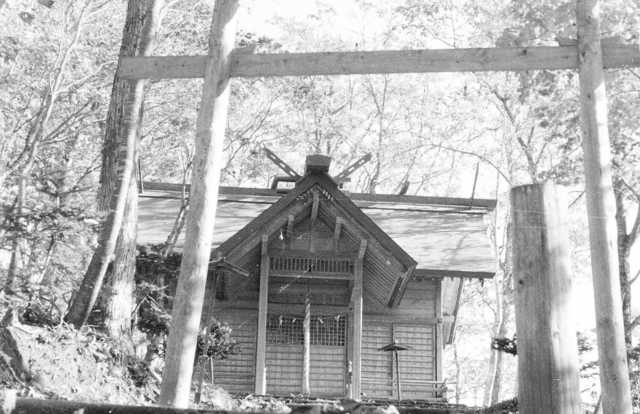 検索結果へ戻る 写真を検索する 鈴木商店写真館 大山祇神社社殿(当時) 築別炭砿の大山祇神社(おおやまづみじんじゃ)は、築別炭砿駅を降りて辰巳橋を渡りそのまま直進すると、突き当りの築別炭砿事務所裏の森に囲まれた高台にあった。築別炭砿開坑当初の昭和15(1940)年に選炭工場裏の高台に造営されたが、その後神殿が老朽化し、場所も良いとは言えなかったため昭和30(1955)年に新造し、遷座したものである。参道や境内は、住民の勤労奉仕で整備された。なお、神社の正面に向かって左脇には羽幌炭砿に主家再興の夢を賭けていた金子直吉の胸像が建てられていた。地元では「築炭神社」と呼ばれており、愛媛県今治市大三島町にある大山祇神社総本社の支社の一つであった。同総本社のご祭神は古来より「山の神」、「海の神」、「戦いの神」として歴代の朝廷や武将から尊崇を集めていたことから、全国の多くの炭鉱など鉱山でも祀られていた。毎年6月11日から13日にかけては「山神祭」が催され、これにあわせて太陽中学校の運動会も開催された。しかし、当時の賑わいもいまはなくただ無人の石段だけが静寂の森の中に続いている。 鈴木商店の歴史>金子直吉のお家再興に向けて 地域特集>羽幌 企業特集>炭鉱 炭鉱, 築別炭砿, 羽幌, 金子直吉のお家再興に向けて