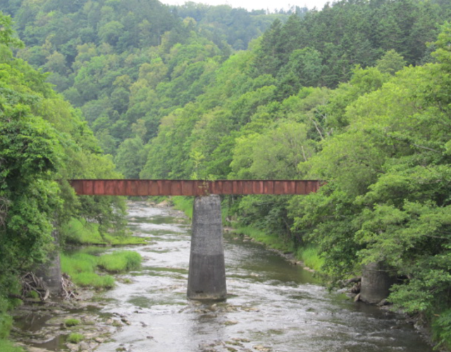 鈴木商店の後継会社たる太陽曹達は昭和14(1939)年春、羽幌鉄道(昭和16年5月5日、羽幌鉄道が羽幌炭砿を吸収する形で合併し、社名は羽幌炭砿鉄道となる。)を設立した。昭和14(1939)年10月、敷設認可に先行して鉄道建設に着手。昭和14(1939)年10月、羽幌鉄道は鉄道省による石炭搬送のための鉄道敷設認可(昭和15年5月7日)に先行して鉄道建設に着手。総延長16.6kmの鉄路は、最後の1年弱の間は鉱員約300名を動員して昼夜兼行、夜は投光器とキャップランプをつけて作業にあたり、事務職員も事務を簡素化して工事に従事するなど強行工事の結果、昭和16(1941)年12月14日、2年余りの短期間で完成し開通の運びとなった。折しも当時は戦時下であり、建設資材の不足は深刻を極めたという。当時の担当技師が遠く九州、四国にまで足を運び、省線(当時の鉄道省の管轄下にあった鉄道線)の路線改修工事でスクラップ同然となった橋桁を探して回るなど散々苦労したという逸話も残されている。羽幌炭鉱鉄道は築別駅から大きくカーブを描き、築別川に沿って内陸へと進路をとっていた。築別川は上流に行くにしたがって蛇行しているため、列車は築別川を数回渡河することになる。まず、最初に渡るのが第一橋梁である。第一橋梁は3本のコンクリート橋脚の上に鋼製の橋桁が架けられているが、よく見ると規格が異なるため不揃いになっていることが分かる。前述の逸話が間違いでなかったことの証しである。