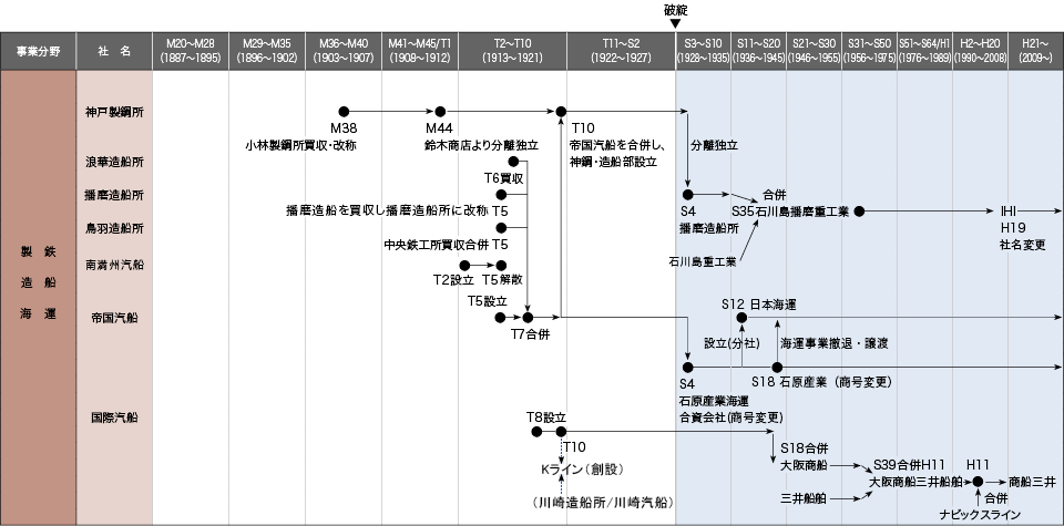 大正7(1918)年、第一次世界大戦の終結を見越した鈴木商店は播磨造船所、鳥羽造船所、浪華造船所を帝国汽船と合併し、播磨造船所と鳥羽造船所は、それぞれ帝国汽船播磨造船工場、同鳥羽造船工場と改称した。また、帝国汽船の社長には二代目鈴木岩治郎が就任した。