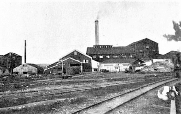 明治35(1902)年、後藤新平から台湾北部の基隆港の活性化策について相談を受けた金子直吉は同港での製糖工場建設を提案しましたが、後藤が議会で鈴木商店との関係を問題視されたため、金子は安価な石炭、良質な淡水、輸送面の至便さを兼ね備えた大里に製糖工場を建設することを決定し翌明治36(1903)年、鈴木商店はカネ辰・藤田商店との共同出資により、後に鈴木商店の飛躍の基礎を作ることになる大里製糖所を設立しました。(左の画像は、当時の大里製糖所です)