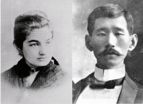 米国で近代製粉技術を習得し、"ドラゴン・ヨネダ"と親しまれ、帰国後わが国の製粉業界に貢献した米田龍平氏は、「近代製粉の父」と評された。米国滞在時、フランス人の妻・ウジェニ・ガレーさんと国際結婚し一男三女をもうけ、家族は生活の拠点を日本に移した。(写真は、若き日の米田龍平・ウジェニ夫妻)