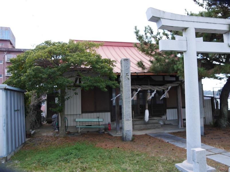 巨大な記念碑は、旧因島船渠の所在地(現・カナデビア因島工場)からやや離れた鏡浦漁港に面する厳島神社境内の一角に設置されている。因島島内にある厳島神社4社のうちの1社で、造船の街・因島の海上交通の安全を祈願する地元の守り神・市寸島比売命(イチキシマヒメノミコト)を祀る。 所在地:因島鏡浦町596